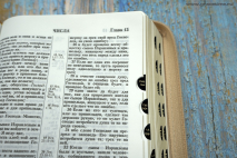 СВЯТАЯ БИБЛИЯ 067 ZTI Светло-розовая, параллельные места, золотой срез, индексы, молния, две закладки /145х220/